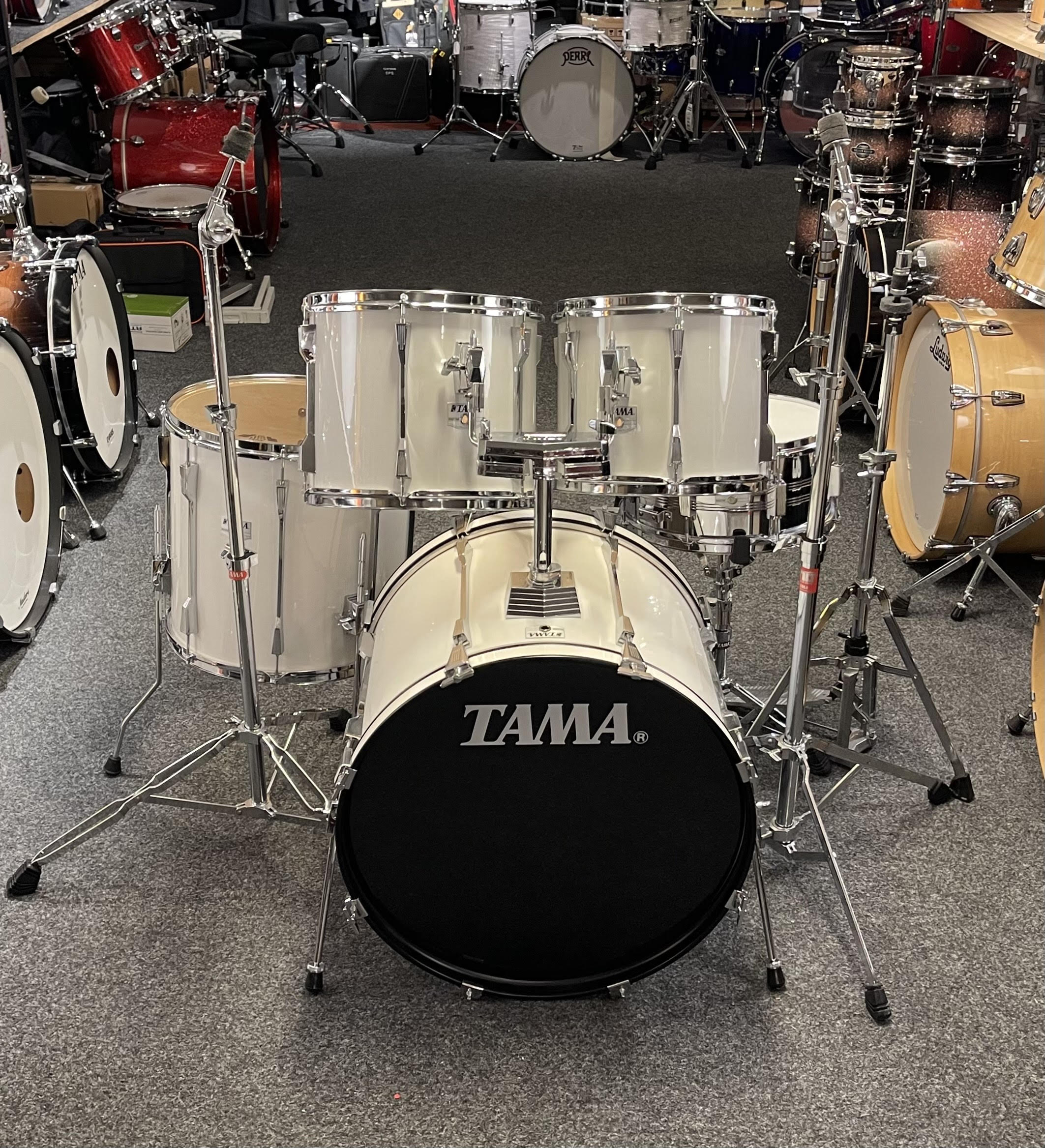 Tama Rockstar MIJ Shellpack 12” 13” 16” 22” inkl originalvirvel 14x6,5” samt stativpaket och pedal